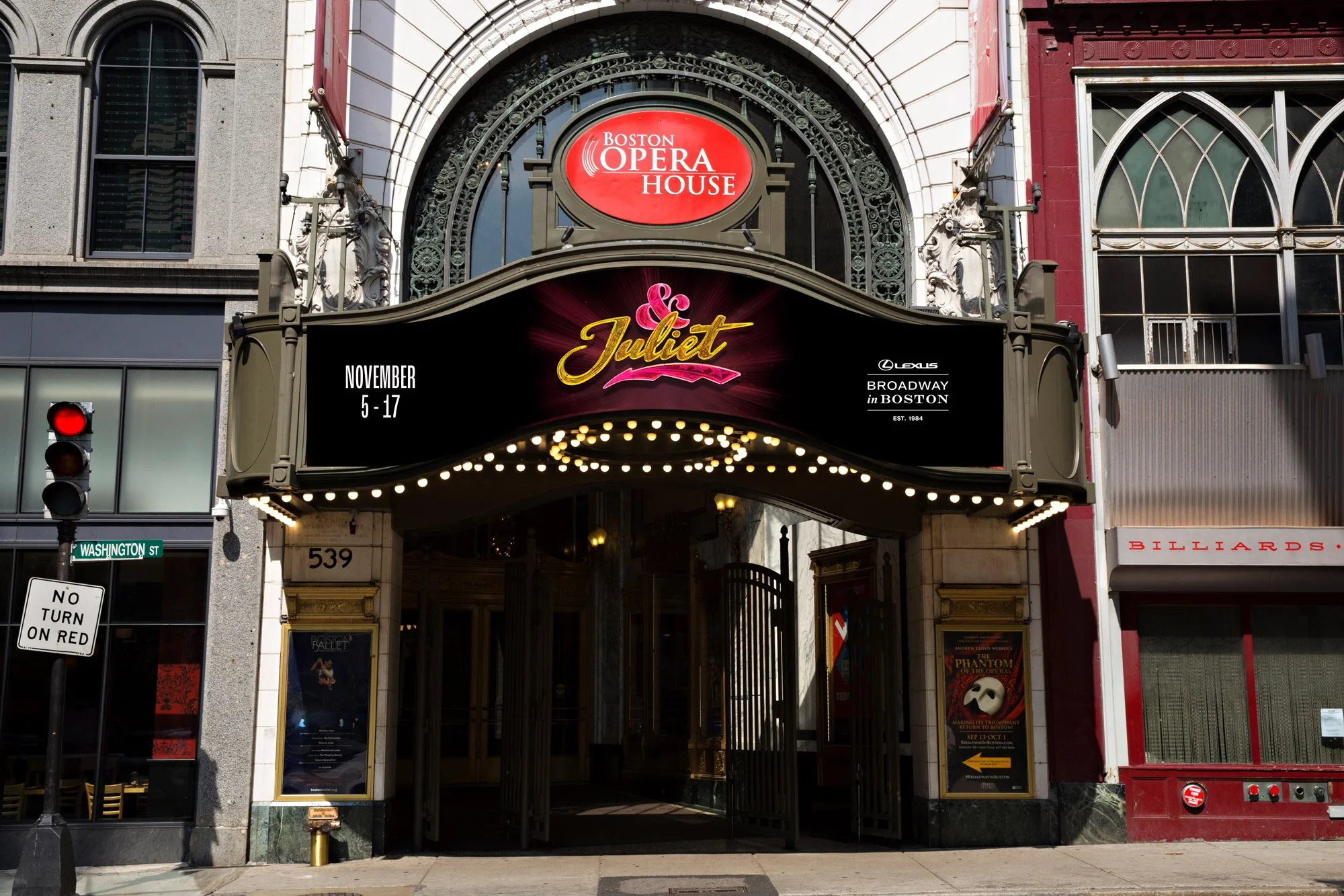 Marquees for & Juliet’s touring production in Boston at the Boston Opera House